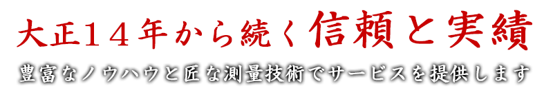 大正14年創業!創業以来積み重ねて来た資料・測量ノウハウを元にサービスを提供させていただきます。